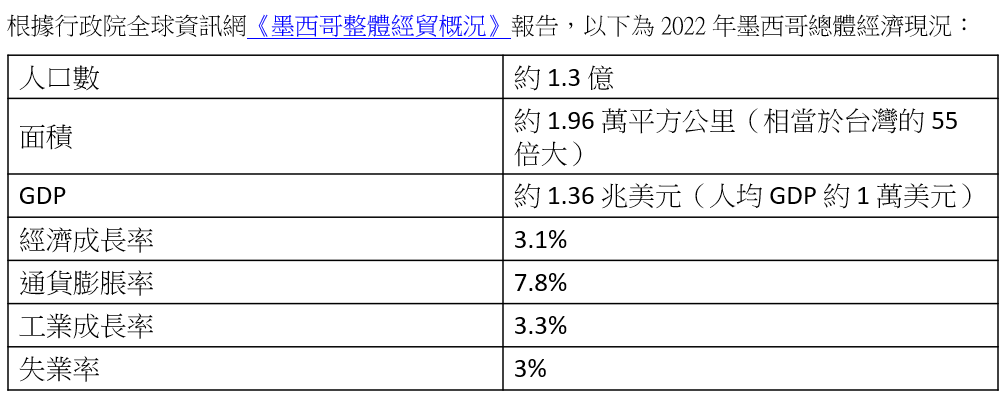 墨西哥自簽訂美墨加協定(USMCA)後,獲得更加優惠的關稅減免及貿易條件,墨西哥進出口貿易總額提升近七倍,大幅促進墨西哥的經濟成長,也吸引了許多外國企業投資設廠。
