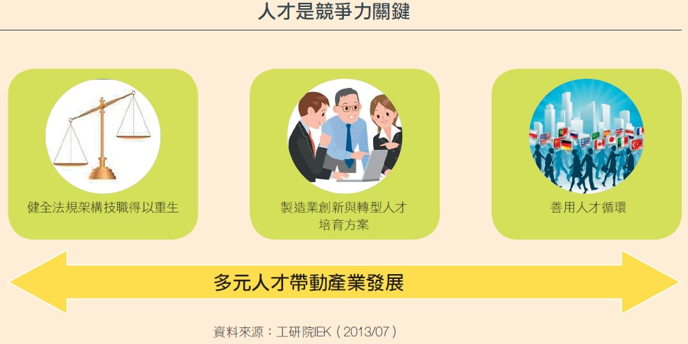 台灣製造業競爭力排行全球前十大,但如何培育足夠人才驅動創新,甚至招募國際間深度與廣度兼具的人才,才是提升台灣全球競爭力的關鍵。